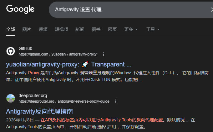 另外如果开全局台北节点的话antigravity会显示地区问题,但洛杉矶会和没开全局一样没反应