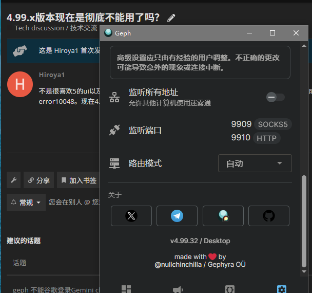 不是很喜欢5的ui以及不能手动选出口服务器,所以一直没有更新。4.99.32近一个月就没有成功连接过,日志一直显示error10048。现在4.99.x的老版本是彻底不能用了吗?