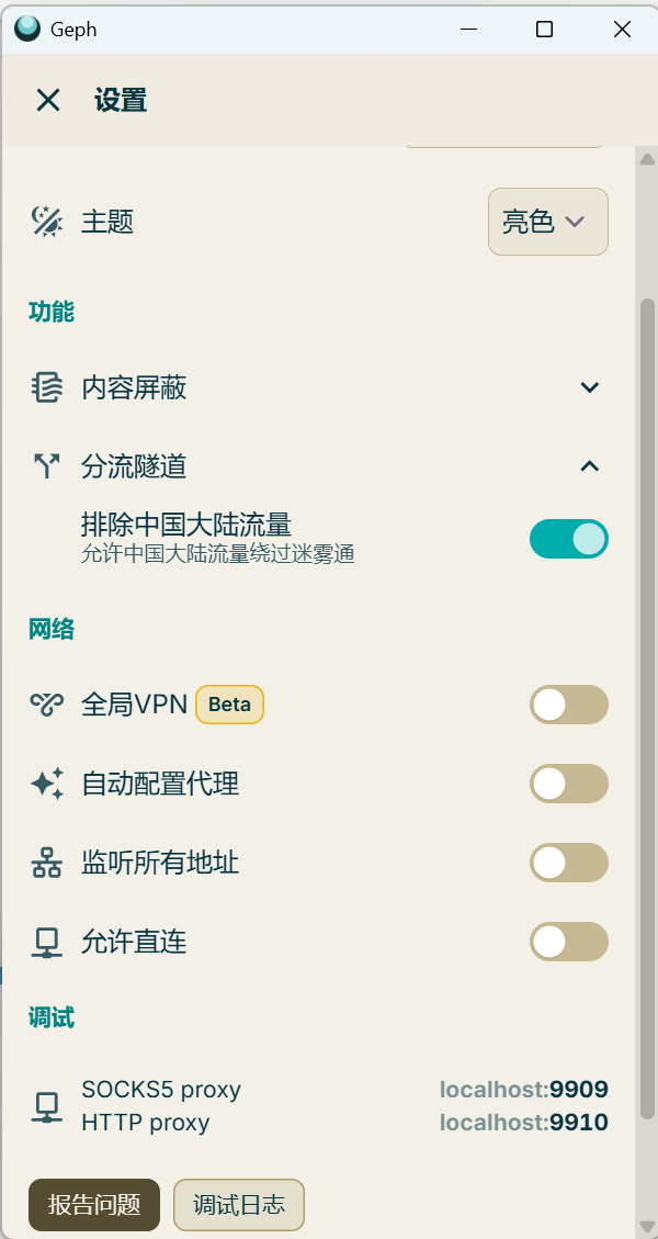 想墙内网站正常,开启VPN时必须“排除大陆流量”。不过